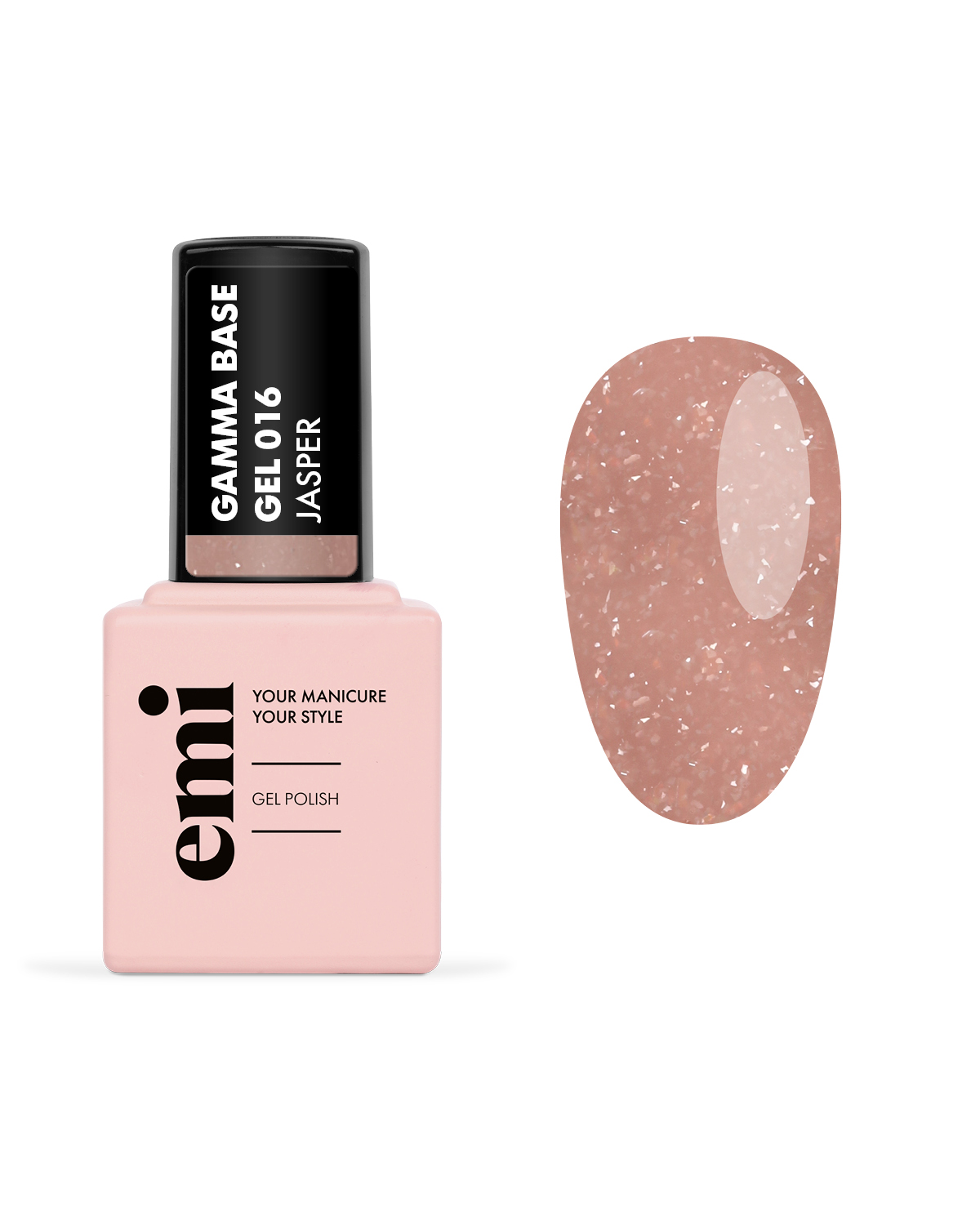 E.MiLac Gamma Base Gel Jasper №016 – цветная база с хрустальным эффектом в формуле с ультражестким каркасом.