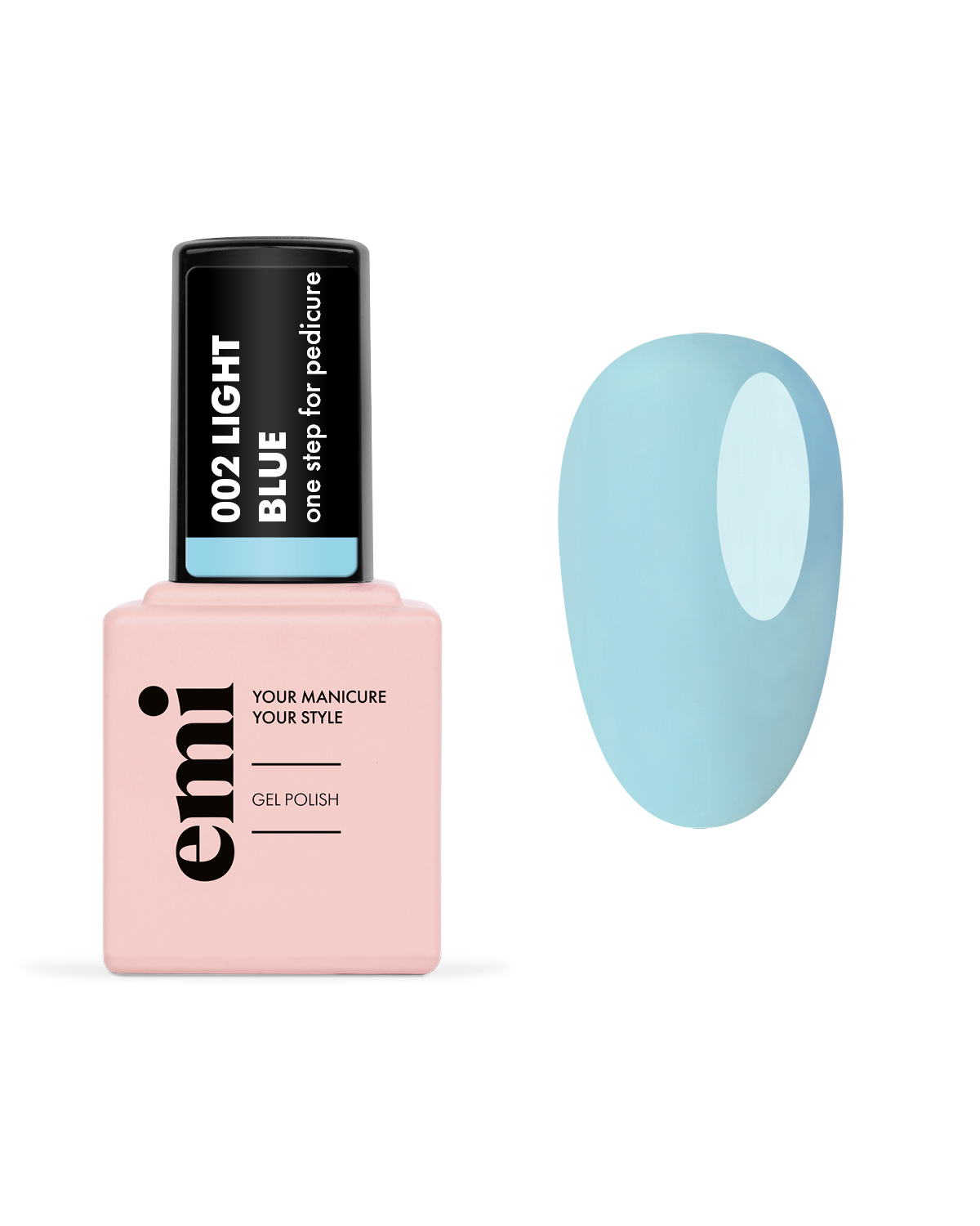 • Нежный и спокойный голубой оттенок однофазного гель лака.