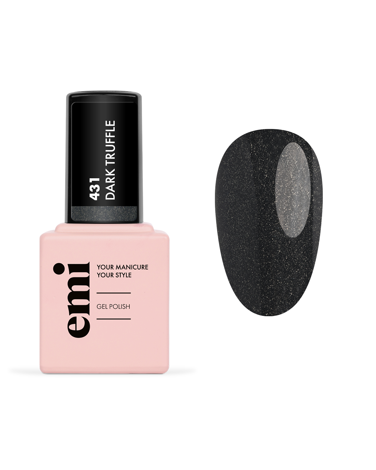 • E.MiLac Темный трюфель №431 – сияющий металлический антрацитовый цвет как никогда становится одним из самых популярных оттенков сезона, универсальный, но при этом очень игривый и притягательный.