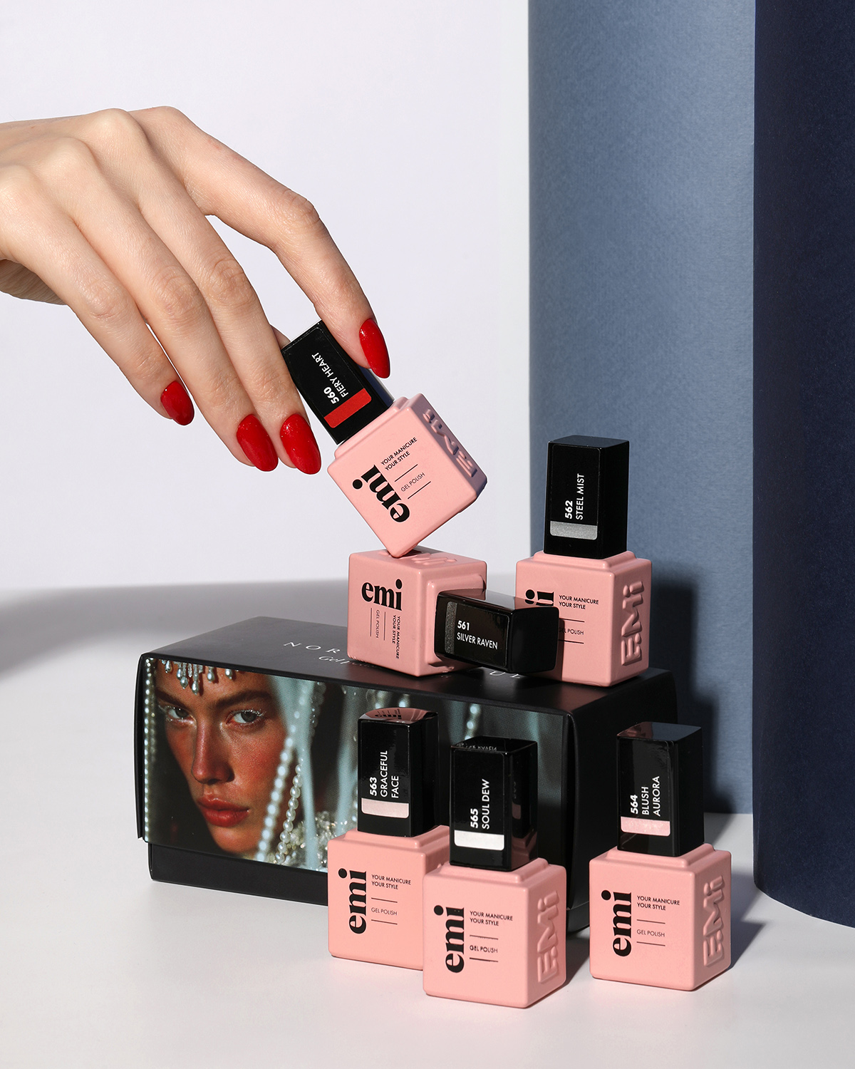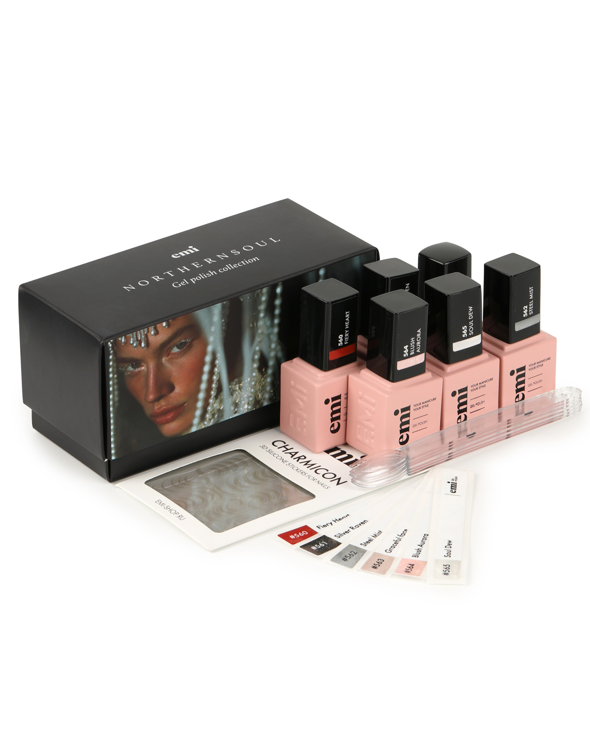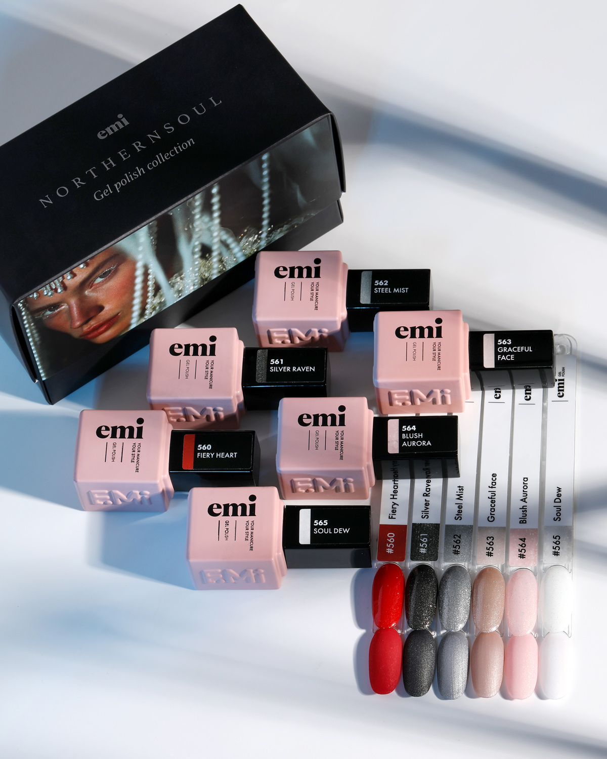 6 невероятных оттенков, рассказывающих о глубине женской души. Все оттенки коллекции – отражение многогранности её характера с сияющим напылением, которое напоминает о том, что каждая грань невероятно прекрасна и хрупка. Контрасты коллекции: холодные оттенки – «север», тёплые – «душа».