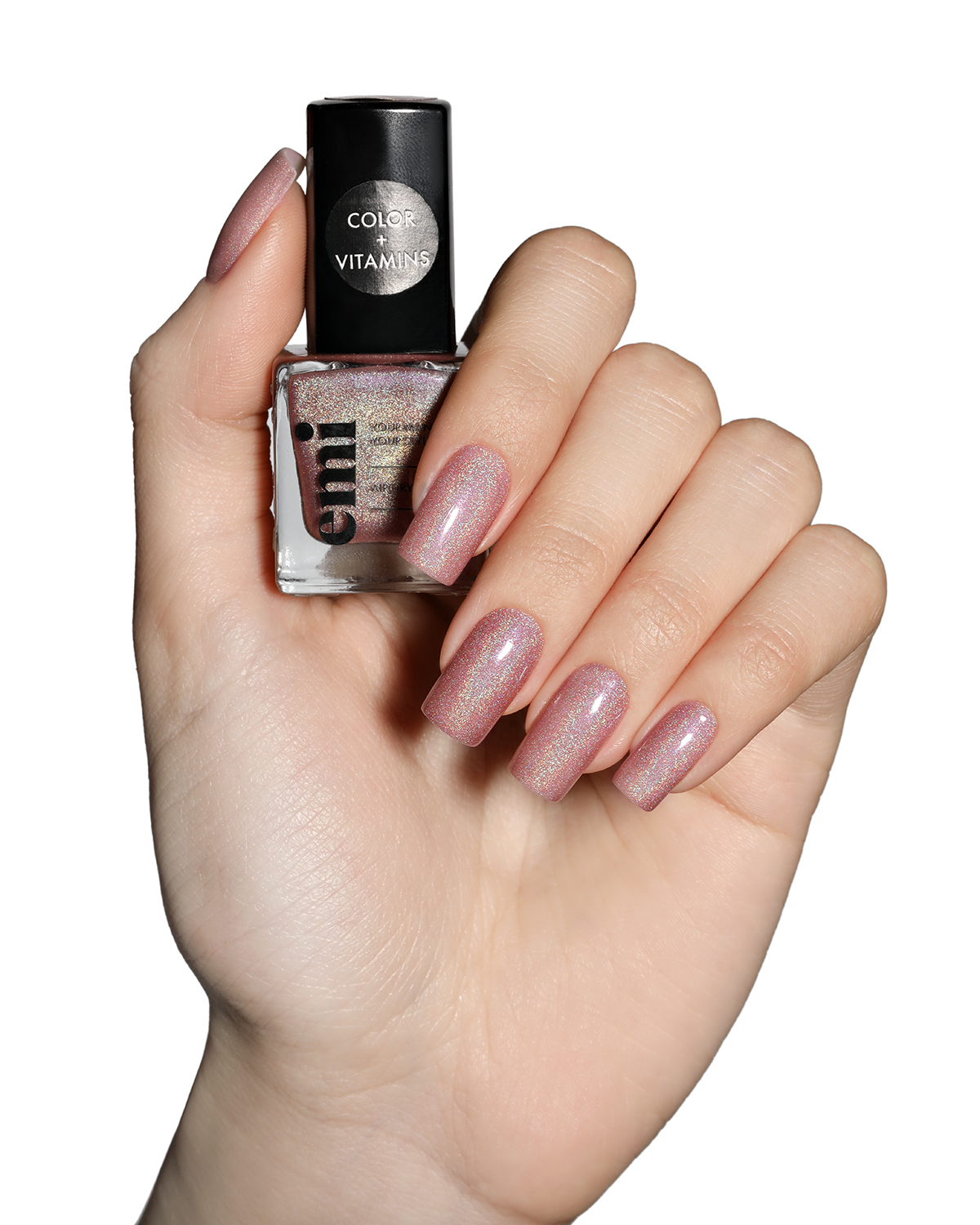 • При нанесении в один слой придаст ногтям розоватый оттенок с мириадами сверкающих частиц.