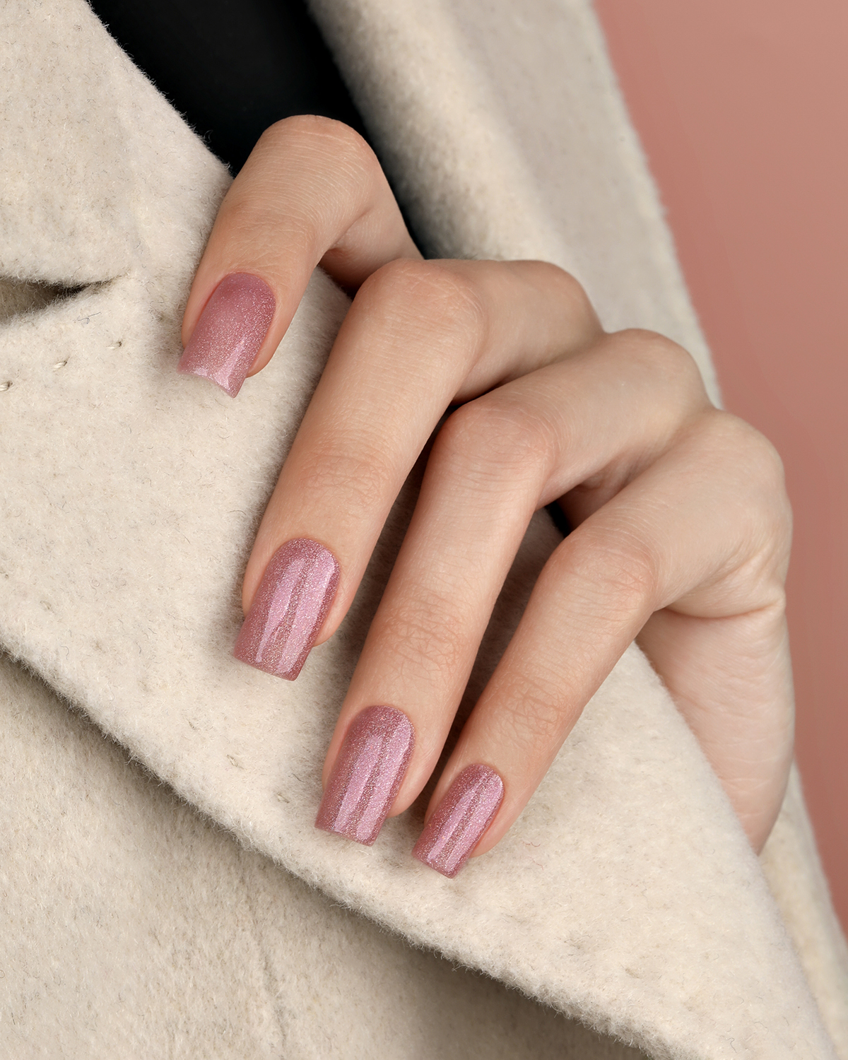• Сияющий розовый лак со светоотражающим эффектом. Сочетает в себе элегантность и современный шик, привлекая взгляды и создавая атмосферу волшебства.