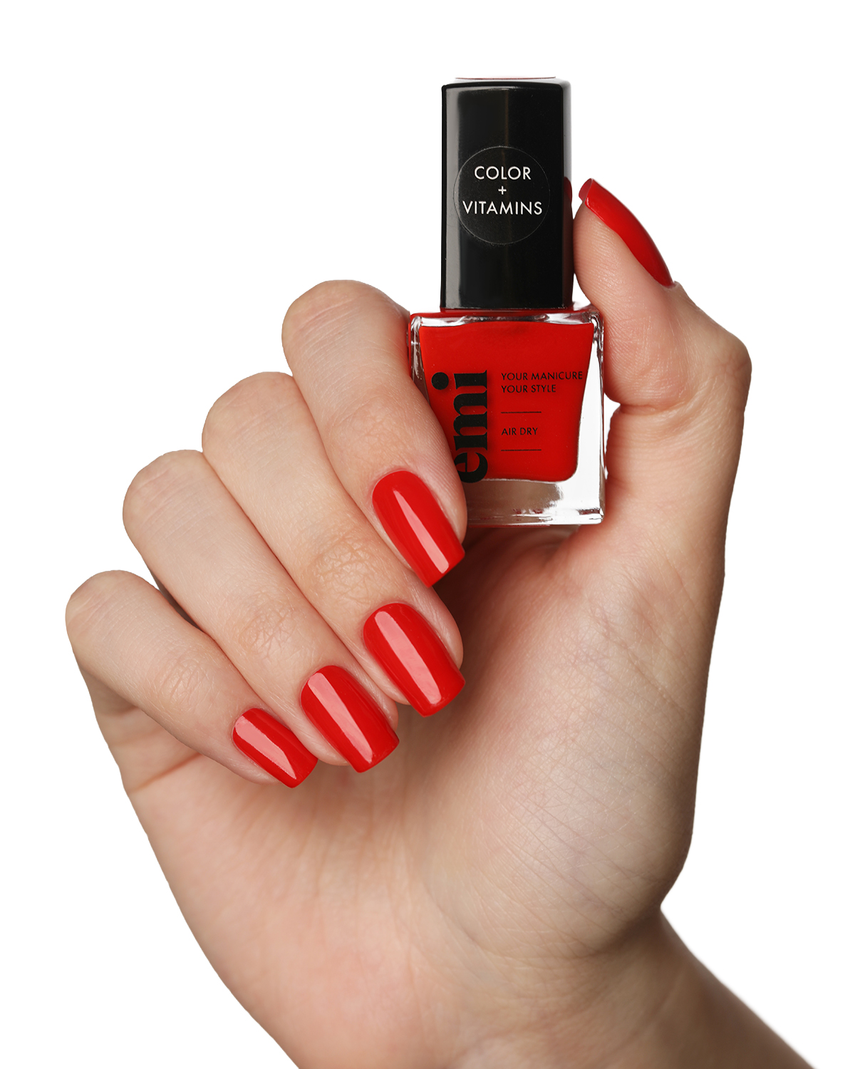 5. Наносим цветной лак E.MiLac Color+Vitamins в 2 тонких слоя. Сушим 5-10 минут каждый слой.